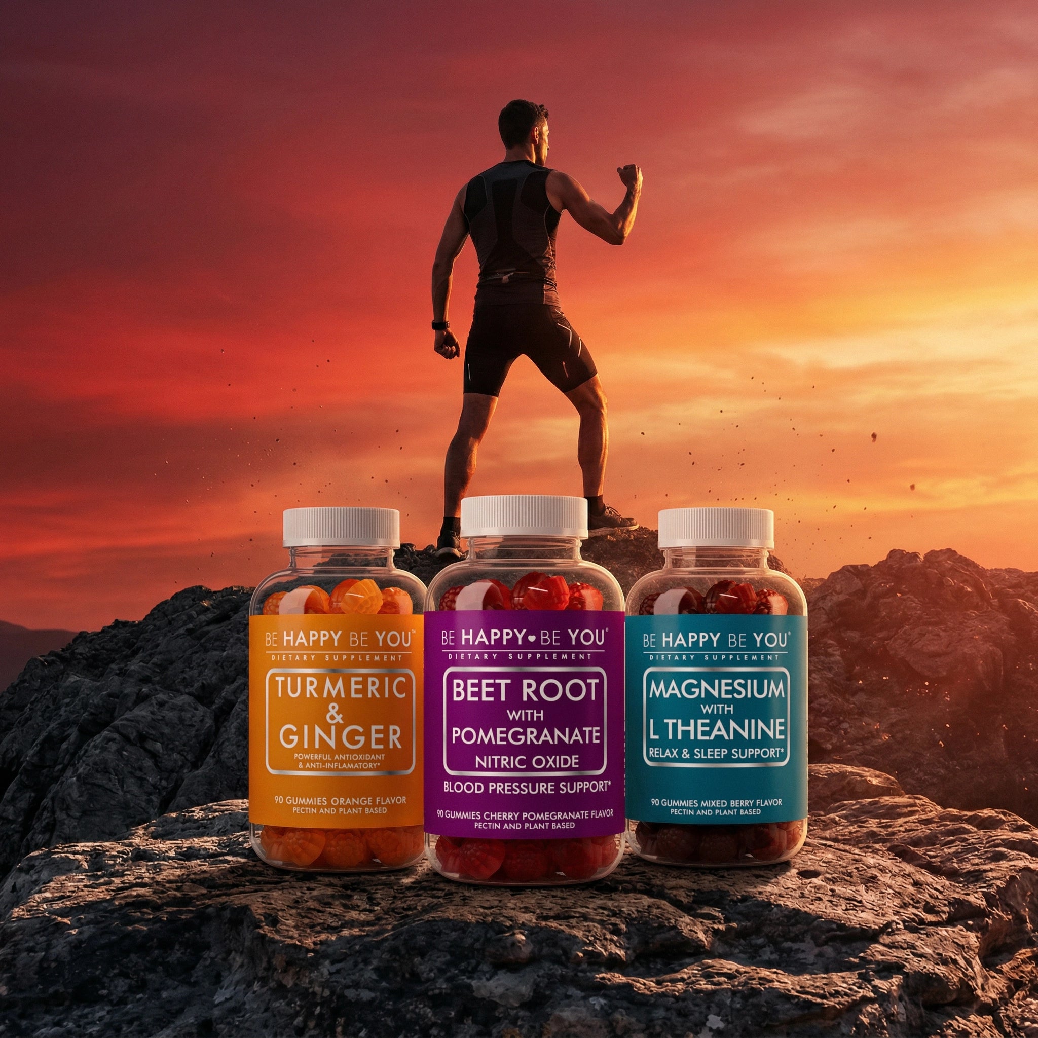 Beetroot for pre-workout circulation. Turmeric for post-exercise inflammation support. Magnesium for overnight recovery. Three plant-powered gummies that cover performance, protection, and recovery in one daily stack.